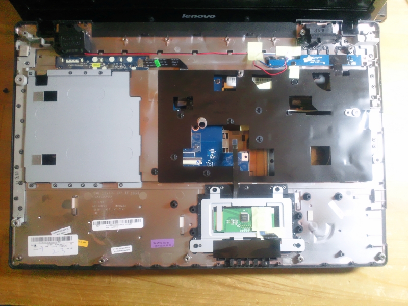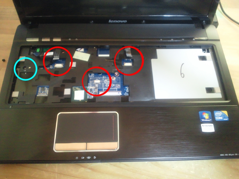 一枚目の赤丸内はタッチパッドや電源ボタン等とマザーボードを繋いでいるライン。