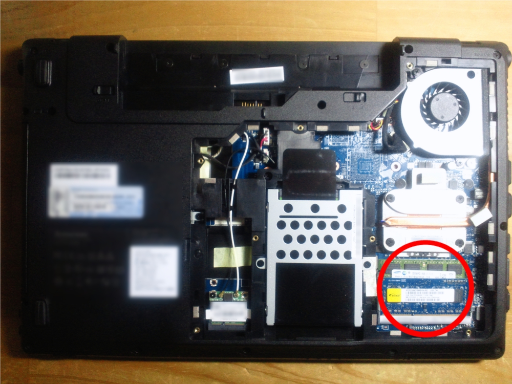 裏蓋をはずしたらこうなり、右下部分がメモリ取り付け位置になります。